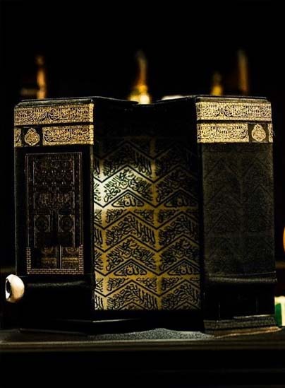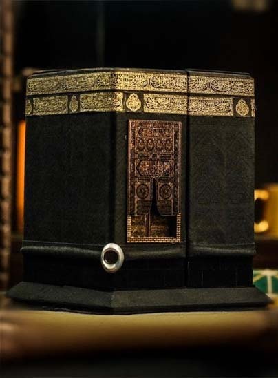 علبة كعبة بقماش الكعبة الاسود وباب الكعبة ذهبي حفر ليزر - متوسطة